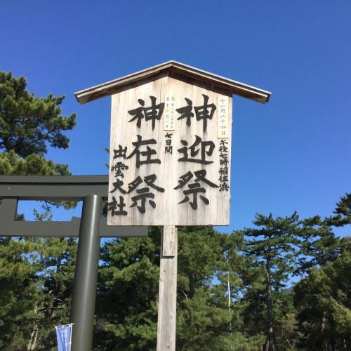 出雲大社・勢溜(せいだまり)にはいよいよ神迎え祭の案内板が立ちました!
